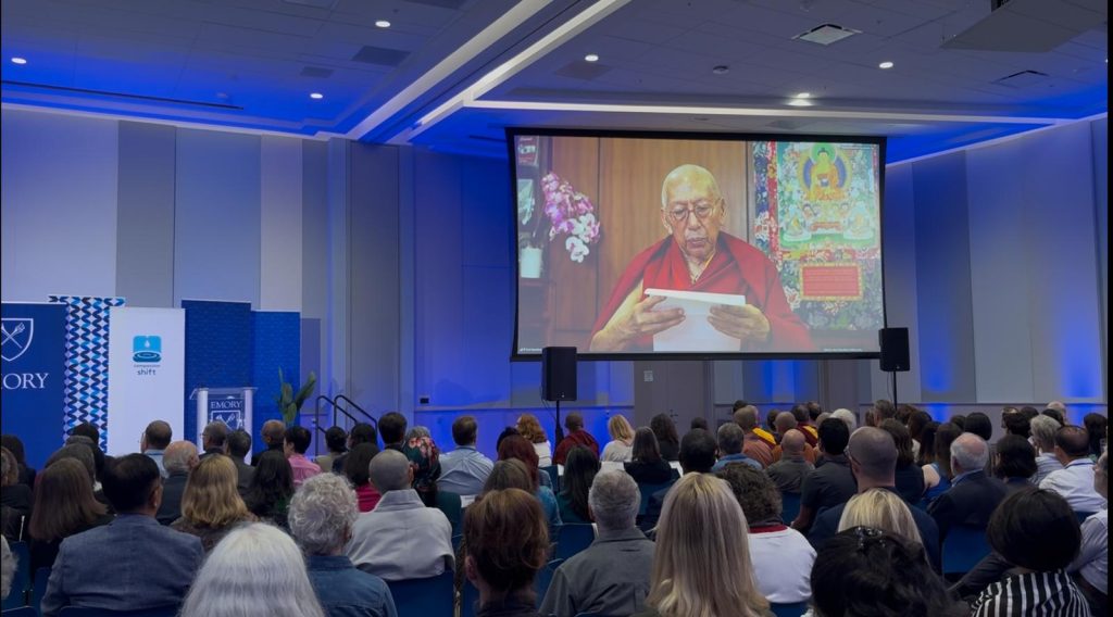 ཨེ་མོ་རི་གཙུག་ལག་སློབ་གཉེར་ཁང་གི་སྙིང་རྗེའི་འཕོ་འགྱུར་ཚོགས་ཆུང་གི་འཐུས་མི་ལྕམ་ཧན་ནཱ་སི་མི་ཐི་ལགས་ཀྱིས་དབུ་འབྱེད་མཛད་སྒོ་གཙོ་སྐྱོང་གནང་ཞིང་། བསྟི་གནས་ཁང་གི་འགན་འཛིན་སློབ་དཔོན་ཆེན་མོ་དགེ་བཤེས་བློ་བཟང་བསྟན་འཛིན་ནེ་གི་ལགས་ཀྱིས་ཨེ་མོ་རི་གཙུག་ལག་སློབ་གཉེར་ཁང་དང་། སྤྱི་ནོར་༸གོང་ས་༸སྐྱབས་མགོན་ཆེན་པོ་མཆོག་དབར་གྱི་ལོ་ངོ་བཅུ་ཕྲག་གསུམ་ལྷག་རིང་གི་མཉམ་ལས་སྐོར་གསལ་སྟོན་གྱིས་དབུ་འབྱེད་གསུང་བཤད་གནང་ཡོད།