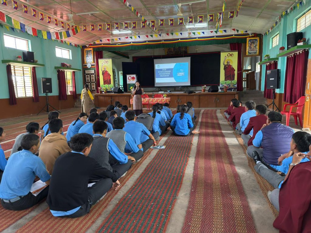 ༄༅། །ཕྱི་ལོ་ ༢༠༢༥ ཟླ་བ་ ༡༠ ཚེས་ ༢༩ ནས་ཕྱི་ཟླ་ ༡༡ ཚེས་ ༨ བར་འདི་ག་ཤེས་རིག་སློབ་ཡོན་ཚན་པའི་གོ་སྒྲིག་འོག་རྒྱ་གར་བྱང་ཤར་དང་ལྷོ་ཕྱོགས་ཁུལ་གྱི་བོད་སློབ་ཁག་ལ་ཤེས་རིག་སློབ་ཡོན་སྐོར་གོ་རྟོགས་ཀྱི་ལས་གཞི་སྤེལ་ཡོད། དེ་ཡང་སློབ་ཡོན་ཚན་པའི་འགན་འཛིན་བསོད་ནམས་བཟང་མོ་ལགས་དང་ལས་རོགས་བསྟན་འཛིན་བསམ་གྲུབ་ལགས་ལྷན་བཅར་གྱིས་སཾ་བྷོ་ཊ་རྡོ་རྗེ་གླིང་དང་། ཀ་སྦུག་སཾ་བྷོ་ཊ། སཾ་བྷོ་ཊ་སྦེལ་ཀོབ། སྦེལ་ཀོབ་བོད་ཁྱིམ། སཾ་བྷོ་ཊ་མོན་གྷོ་བཅས་ཀྱི་འཛིན་རིམ་བཅུ་པ་དང་བཅུ་གཉིས་སློབ་ཕྲུག་ཁྱོན་ ༥༣༠ ལྷག་ཙམ་ཞིག་ལ་ཤེས་རིག་སློབ་ཡོན་སྐོར་གོ་རྟོགས་སྤེལ་ཡོད།