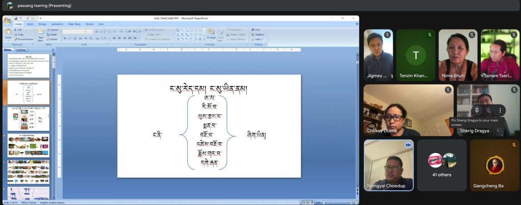 མཇུག་ཏུ་བོད་རིགས་འབྲེལ་མཐུད་པ་དང་སློབ་དེབ་རྩོམ་སྒྲིག་འགན་འཛིན་གྱིས་ཐུགས་རྗེ་ཆེ་ཞུ་དང་མཉམ་ཞུགས་གནང་མཁན་དགེ་རྒན་རྣམ་པས་མ་འོངས་སོན་རྩ་ཡིན་པའི་བོད་ཕྲུག་རྣམས་ཀྱི་ཆེད་དུ་བློས་གཏོང་ཆེན་པོས་དང་བླང་ཞབས་ཞུ་གནང་བར་བསྔགས་བརྗོད་དང་ཐུགས་རྗེ་ཆེ་ཞུའི་གཏམ་ཐུང་སྨྲས་པའི་སྒོ་ནས་ཐེངས་འདིའི་ཟབ་སྦྱོང་ཐལ་མོ་བརྡབ་པའི་སྒྲའི་ཁྲོད་དུ་མཇུག་སྒྲིལ།