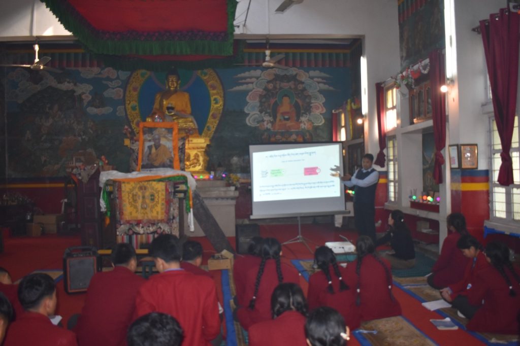 སྐབས་དེར་སློབ་ཕྲུག་རྣམས་ལ་བོད་མིའི་སྒྲིག་འཛུགས་ཤེས་རིག་ལས་ཁུངས་ཀྱི་སློབ་ཡོན་སྐོར་དང་འབྲེལ་སློབ་ཡོན་ཕུལ་ཕྱོགས་ཀྱི་ཆ་རྐྱེན་དང་། དྲྭ་ཐོག་སྙན་ཞུ་འབུལ་བའི་རིམ་པ་བཅས་ཀྱི་ཐད་ལམ་སྟོན་གནང་བ་དང་ཆབས་ཅིག་སློབ་མའི་དོགས་འདྲི་ཁག་ལ་ལན་འདེབས་གསལ་བཤད་གནང་ཡོད། དེ་བཞིན་ཤེས་རིག་ལས་ཁུངས་ཀྱི་སློབ་ཡོན་ཐོབ་མཁན་སློབ་མ་འགའ་ཞིག་གིས་བརྙན་ཐུང་བརྒྱུད་སློབ་ཕྲུག་རྣམས་ལ་སོ་སོའི་ཉམས་མྱོང་དང་འབྲེལ་ནས་ལམ་སྟོན་གནང་ཡོད།