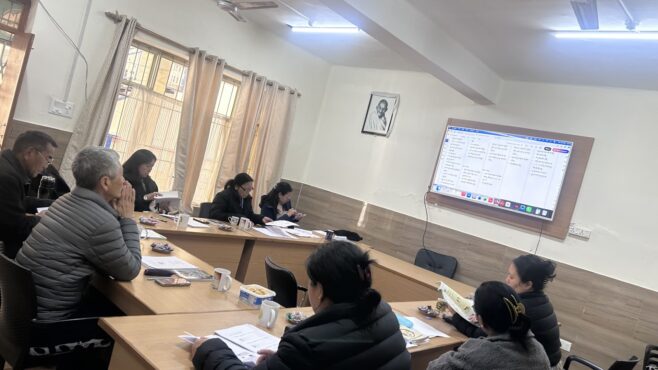 དེ་ཡང་གོང་ཚེས་ཉིན་གཞི་རིམ་འོག་མའི་ཨང་རྩིས་སློབ་དེབ་བསྐྱར་ཞིབ་ཚོགས་ཆུང་གི་ཚོགས་མི་ཤེས་རིག་ལས་ཁུངས་ཀྱི་ཕ་ཡུལ་རྩོམ་སྒྲིག་པ་ངག་དབང་བསྟན་འཛིན་ལགས་དང་། ཤེས་ཡོན་ཚན་པའི་ལས་བྱེད་བདེ་སྐྱིད་དཔལ་མོ་ལགས། ཨང་རྩིས་སློབ་དེབ་རྩོམ་སྒྲིག་པ་བསྟན་འཛིན་ཚེ་འཕེལ་ལགས། དྷ་སྟེང་བོད་ཁྱིམ་གྱི་ཨང་རྩིས་རྒྱུས་སྟོན་པ་བསོད་ནམས་རྒྱལ་པོ་ལགས་དང་། རྒྱུས་སྟོན་པ་ཟུར་པ་འཕྲིན་ལས་དཔལ་མོ་ལགས། ཅོན་ཏ་ར་བོད་ཁྱིམ་གྱི་གཞི་རིམ་འོག་མའི་རྩིས་དགེ་བསོད་ནམས་ཆོས་སྒྲོན་ལགས། ཤིམ་ལཱ་སཾ་བྷོ་ཊ་སློབ་གྲྭའི་སློབ་སྤྱི་ལས་ཚབ་པདྨ་རྒྱལ་མཚན་ལགས། མེས་དབོན་གཙུག་ལག་དཔེ་སྟོན་སློབ་གྲྭའི་གཞི་རིམ་འོག་མའི་རྩིས་དགེ་བསྟན་འཛིན་མཚོ་རྒྱལ་ལགས་དང་། གཞི་རིམ་བར་མའི་རྩིས་དགེ་ཚེ་རིང་མཚམས་གཅོད་ལགས། མ་སུ་རི་བོད་ཁྱིམ་སློབ་གྲྭའི་གཞི་རིམ་འོག་མའི་རྩིས་དགེ་བདེ་སྐྱིད་ཆོས་སྒྲོན་ལགས་བཅས་ལྷན་འཛོམས་ཀྱིས། བཙན་བྱོལ་བོད་མིའི་གཞི་རིམ་ཤེས་ཡོན་སྲིད་བྱུས་ཀྱི་དགོངས་དོན་འོག་ཕྱི་ལོ་ ༢༠༢༥ ཟླ་བ་ ༤ ནང་བསྐྱར་ཞིབ་དང་གཏན་འབེབས་གནང་བའི་གཞི་རིམ་འོག་མའི་ཨང་རྩིས་ཀྱི་བསླབ་གཞིའི་རྩ་འཛིན་གཞིར་བཟུང་སྒྱུར་སྒྲིག་གནང་བའི་འཛིན་རིམ་དང་པོའི་ཨང་རྩིས་སློབ་དེབ་རགས་ཟིན་གོ་བསྡུར་དང་སྦྱངས་བཤད་ཀྱིས་གཏན་འབེབས་ཞུས་པ་དང་། མཐའ་མའི་ཞུ་དག་གྲུབ་མཚམས་སློབ་དེབ་པར་སྐུན་བྱས་ཏེ་བོད་སློབ་ཁག་ལ་རིན་མེད་འགྲེམས་སྤེལ་གནང་འཆར་འདུག