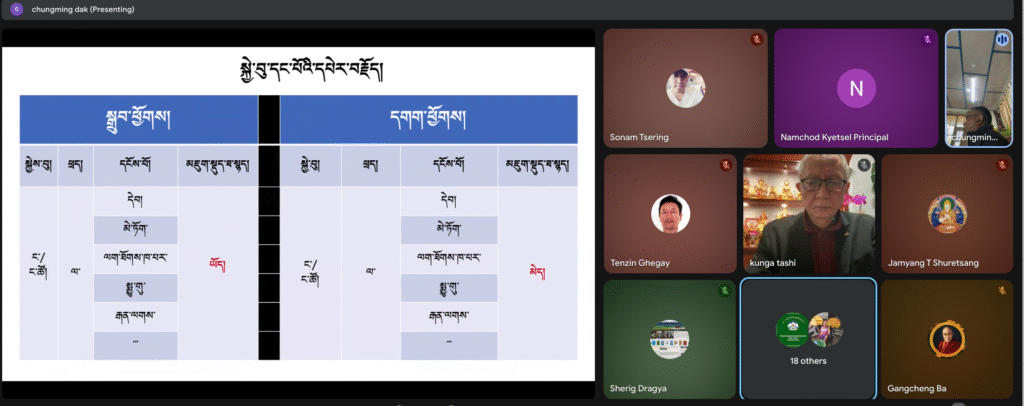 གཞིས་རིམ་བར་མའི་དགེ་རྒན་རྣམས་ལ་ཟབ་ཁྲིད་གནང་མཁན་ནི། སློབ་ཁྲིད་ཀྱི་ཉམས་མྱོང་ཕུན་སུམ་ཚོགས་པའི་བོད་ཕྲུག་ཁྱིམ་སྡེའི་འཛིན་སྐྱོང་དྲུང་ཆེ་རྒན་མིང་ཆུང་ལགས་ཡིན་ཞིང་། ཤེས་རིག་ལས་ཁུངས་ཀྱི་སློབ་དེབ་རྩོམ་སྒྲིག་འགན་འཛིན་དགེ་འདུན་དོན་ཡོད་ལགས་དང་། བྱང་ཨ་རི་སྐུ་ཚབ་དོན་གཅོད་ཁང་གི་བོད་རིགས་འབྲེལ་མཐུད་པ་ཀུན་དགའ་བཀྲ་ཤིས་ལགས་ནས་ཟབ་སྦྱོང་ཐེངས་གཉིས་པ་འགོ་འཛུགས་ཀྱི་ངོ་སྤྲོད་མདོར་བསྡུས་གྲུབ་རྗེས། རྒན་མིང་ཆུང་ལགས་ཀྱིས་གཞི་རིམ་བར་མའི་སློབ་ཕྲུག་རྣམས་ལ་སློབ་ཁྲིད་སྐབས། ཀློག་རྩལ་དང་། འབྲི་རྩལ། ཉན་རྩལ། ཤོད་རྩལ། སྦྱོང་ཚན་བཀོད་སྒྲིག་བྱེད་སྟངས་བཅས་ཀྱི་ཐབས་ལམ་ཐོག་ཟབ་ཁྲིད་གནང་བ་དང་། ཟབ་ཁྲིད་ཀྱི་བར་དང་ཟབ་ཁྲིད་ཀྱི་རྗེས་ལ་དགེ་རྒན་ཚོའི་དྲི་བ་ཁག་ལ་ལན་འདེབས་དང་། གསལ་བཤད་འདོད་པ་འཚིམ་པ་གནང་། དུས་ཡུན་ཆུ་ཚོད་གཉིས་ནང་ཚར་བ་བྱེད་རྒྱུའི་ཟབ་སྦྱོང་དེ་ཡང་ཐེངས་དང་པོའི་ཟབ་སྦྱོང་དང་འདྲ་བར་ཆུ་ཚོད་གསུམ་དང་ཕྱེད་ཀ་འགོར། ཟབ་ཁྲིད་གནང་མཁན་དང་། ཟབ་ཁྲིད་ཉན་མཁན་གཉིས་ཀས་དོ་སྣང་ཆེན་པོ་གནང་བ་མ་ཟད། དྲི་བ་དྲི་ལན་དང་དགོངས་ཚུལ་ཡང་བརྗེ་རེས་གནང་།