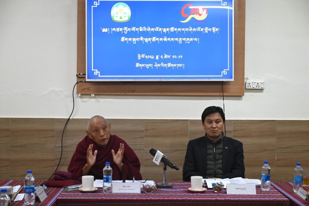 དེ་བཞིན་མཁན་ཟུར་བཀྲ་ཤིས་ཚེ་རིང་ལགས་ཀྱིས་ཤེས་ཡོན་ནི་སློབ་སྦྱོང་རྐྱང་པ་ཙམ་མིན་པར་སློབ་མ་རྣམས་ལ་འཕྲོད་བསྟེན་གྱི་གོ་རྟོགས་དང་། བཟང་སྤྱོད་ཀྱི་སློབ་གསོ་སྤྲོད་དགོས་པའི་གལ་གནད་སྐོར་གསུངས་པ་དང་། དེ་སྔོན་བསྐོང་ཚོགས་གནང་བའི་ལྷན་ཚོགས་ཀྱི་གྲོས་ཆོད་ལ་བསྐྱར་ཞིབ་ཀྱིས་བོད་པའི་སློབ་གྲྭ་ཁག་གི་ནང་སློབ་ཕྲུག་སློབ་འཇུག་བྱེད་མཁན་ཉུང་དུ་འགྲོ་བཞིན་པས་སློབ་གྲྭའི་འཛིན་སྐྱོང་གི་འགྲོ་ལུགས་དང་ཤེས་ཡོན་གྱི་ཐབས་ལམ་ལ་བསྐྱར་ཞིབ་གནང་དགོས་པའི་གལ་གནད་དང་། དེ་དང་ཕྱོགས་མཚུངས་དགོན་སྡེ་ཁག་གི་ནང་དུའང་བོད་པའི་དགེ་འདུན་པ་འཛུལ་མཁན་ཉུང་དུ་འགྲོ་བཞིན་པ་དང་རྒྱ་གར་གྱི་ཕྱི་ལོགས་དང་ཧི་མ་ལ་ཡའི་ས་ཁུལ་ནས་སློབ་མ་འཛུལ་མཁན་མང་དུ་འགྲོ་བཞིན་པའི་སྐོར་འགྲེལ་བརྗོད་གནང་ཡོད།