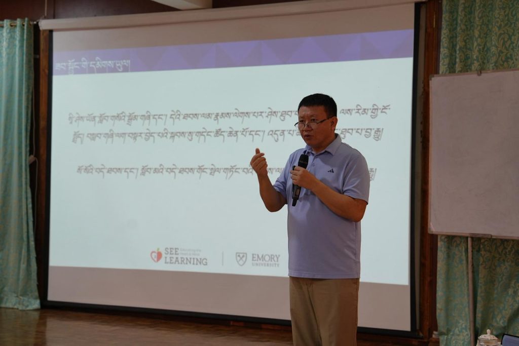 The workshop was facilitated by Geshe Tenzin Negi, Professor at Emory University; Tsondue Samphel, Assistant Director and programme facilator of SEE Learning; PhD Tenzin Sonam, Assistant Research Scientist for SEE Learning, and Geshe Tenzin Tsenlek, SEE Learning facilitator at Sarah College of Higher Tibetan Studies (CHTS); and Tenzin Pema, Additional Secretary of the Department of Education and a member of the Education Council.